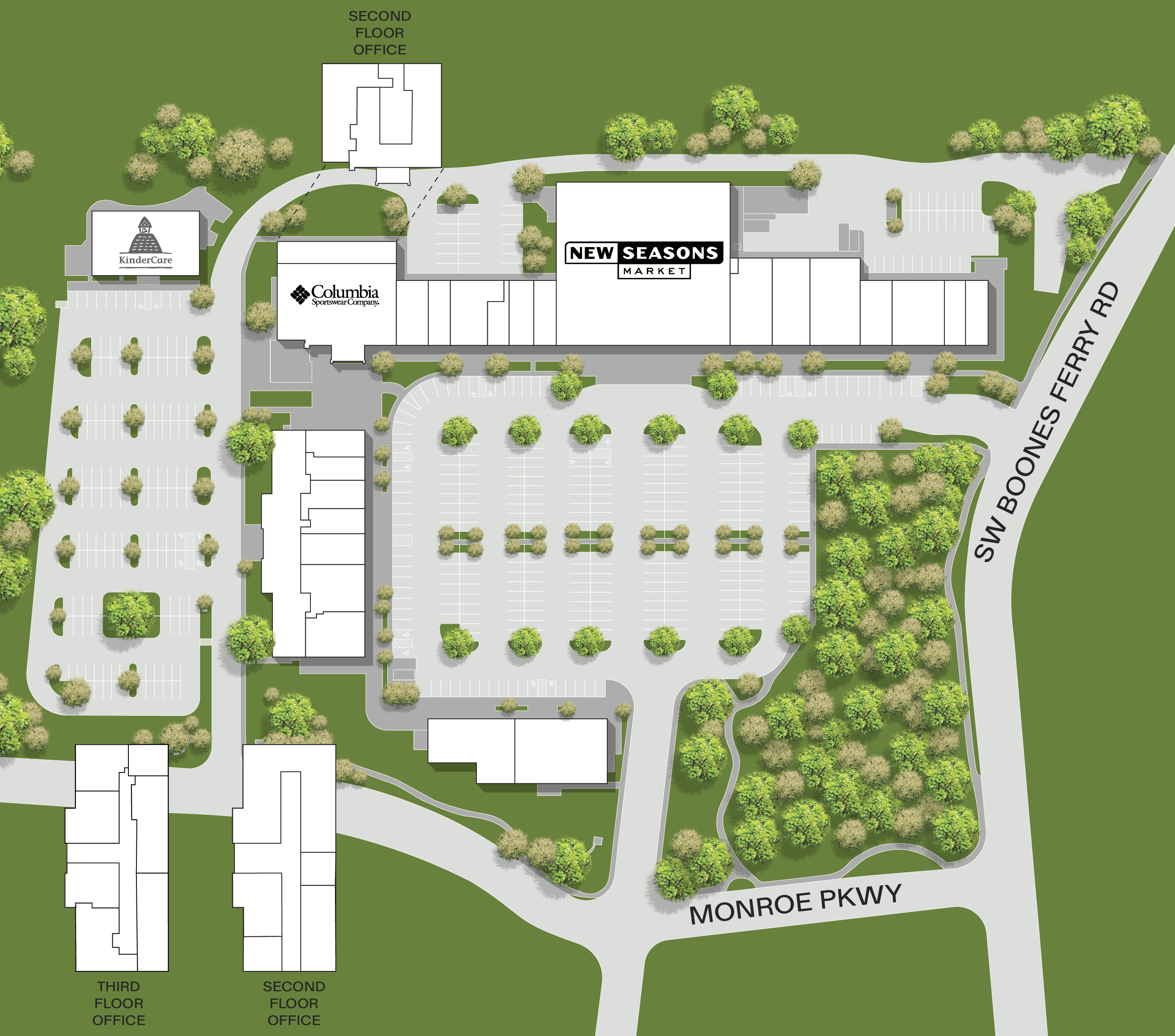 Oswego Towne Square is located 7 miles south of Portland just east of I-5 off of Boones Ferry Road.